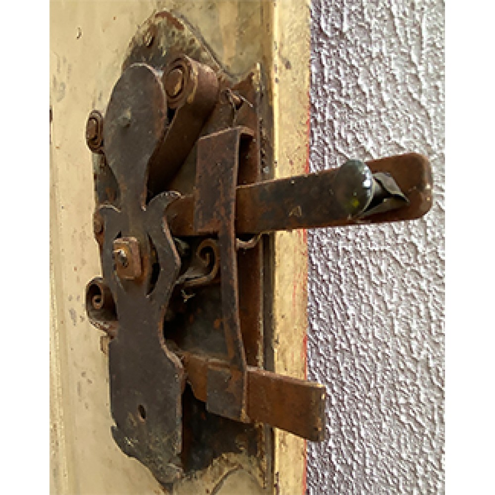 Kapının orijinal kilit mekanizması üzerindedir fakat anahtarı yoktur. Menteşeleri yoktur.