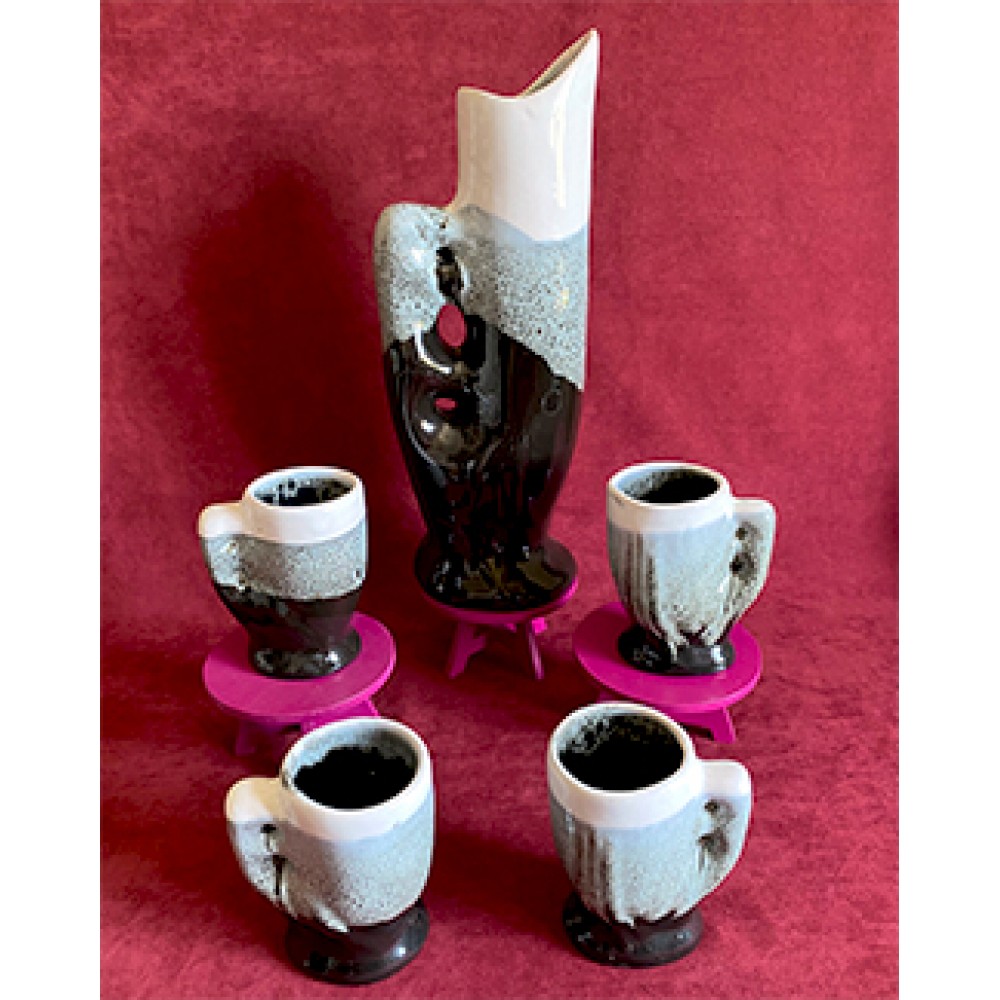 5 parçadan oluşan tamamı el yapımı olan seramik kupa kadeh ve sürahi