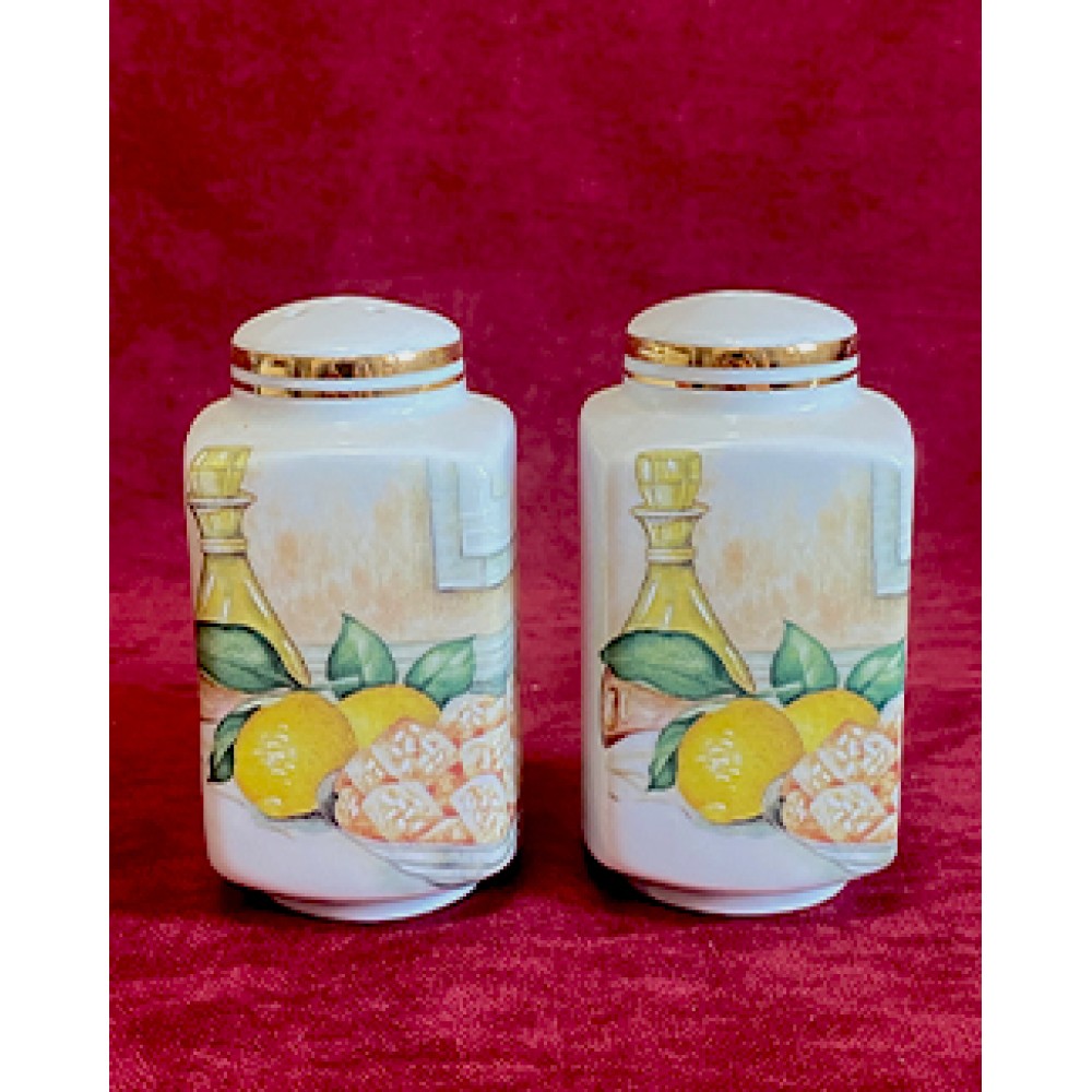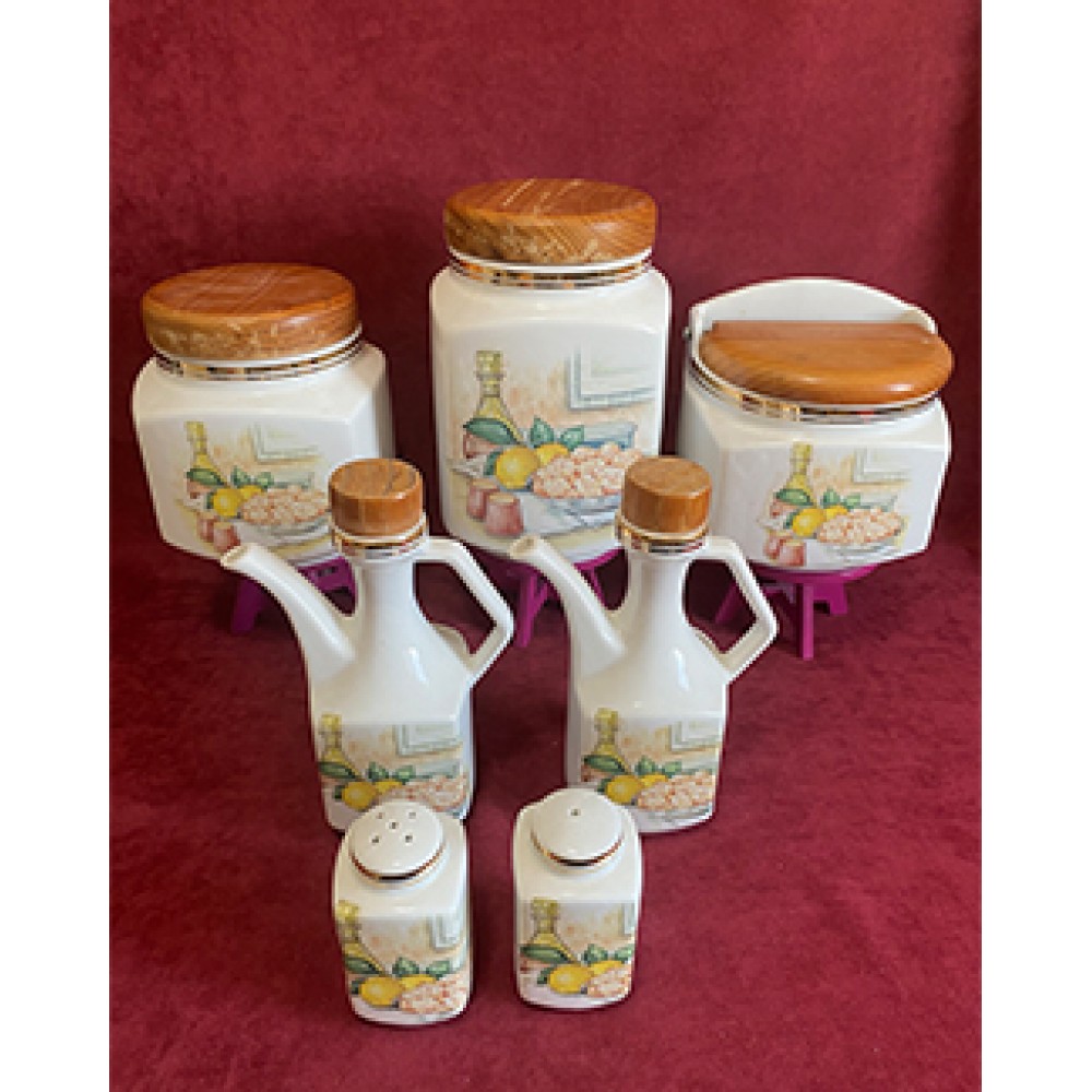 Limoges mühürlü olan ve 7 parçadan oluşan porselen el boyama mutfak seti.